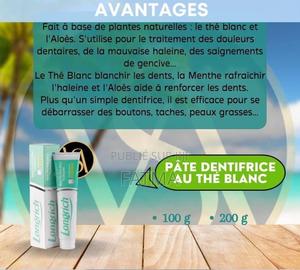 Fait à base d'aloe vera et de thé blanc - Ne contient pas de fluor - Lutte contre les gingivites - Blanchit les dents - Rafraichit l'haleine - Efficace contre les brûlures - Utilisé comme masque de visage - Prévient contre la carrie dentaire