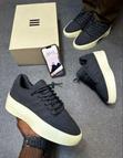 Sneakers noires tendance avec lacets épais style unique. Confort optimal, design moderne et robuste....