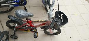 Vélo d'apprentissage avec deux roues stabilisatrices idéal pour un maintien d'équilibre lors de l' apprentissage. Cadre en alliage robuste et durable. Disponible en différentes tailles. De 2 à 13 Ans. Les prix varient en fonction des âges