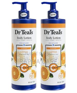 Lotion pour le corps Dr Teal's Moisture + Radiant Citrus à la vitamine C. Ce soin est conçu pour nourrir, hydrater et revitaliser la peau tout en apportant un éclat naturel.