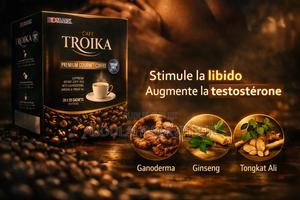Le Café Troika est un mélange spécial de café instantané, de ginseng, et de ginkgo biloba, conçu pour apporter énergie, clarté mentale et vitalité.
