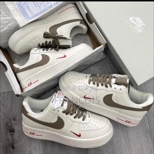 Nike air force one silhouette classique, légèrement massive, avec une allure sportive mais élégante, facilement reconnaissable.