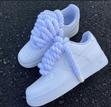 Nike Air Force 1 blancs, icône du streetwear. Design classique, cuir lisse, semelle blanche épaisse....