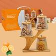 Ensemble sucreries superposés en verre avec support en bois et couvercle