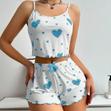Pyjama d'été pour femme composé d'un haut à fermeture éclair et d'un short imprimé à motifs de...