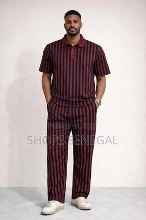 Affirmez votre style avec cet ensemble moderne et élégant composé d’un polo à manches courtes et d’un pantalon assorti, sublimé par de superbes rayures verticales bordeaux et noires qui allongent la silhouette et apportent une touche de sophistication. Conçu pour offrir confort et allure, cet ensemble est parfait pour les sorties, les événements décontractés ou pour afficher un look coordonné en couple avec beaucoup de classe. Sa coupe soignée, son tissu agréable à porter et son design tendance en font une tenue idéale pour ceux qui veulent se démarquer tout en restant élégants et à l’aise toute la journée. Un choix parfait pour un style chic, moderne et irrésistible.